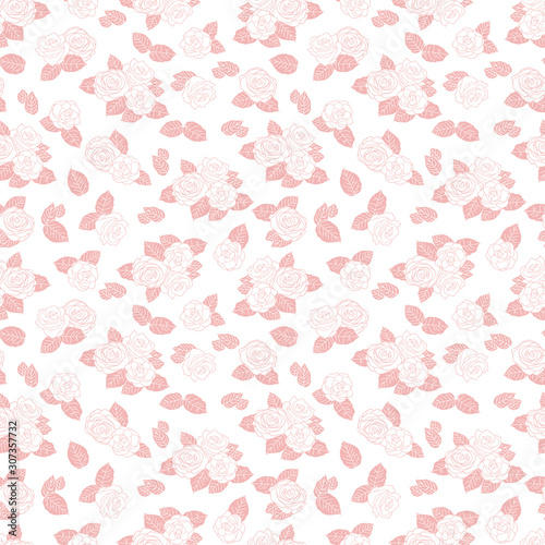 Romantic vector repeat pattern with small roses on white background. Vintage style.