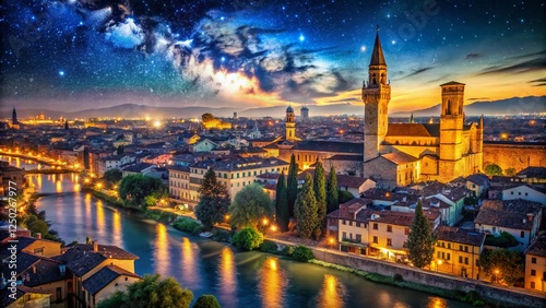 Romantic Verona Night: Cityscape, Architecture, Italy, Night Photography, Stars