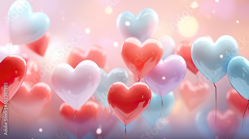 Romantic vistas brought to life with glistening hearts in soft hues, set against a tranquil azure scene