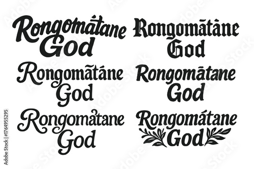 Rongomatane Lettering Variations. Rongomatane God. Set lettering. harmonious lettering variations of the same emblematic concept (Bold hand-lettering with