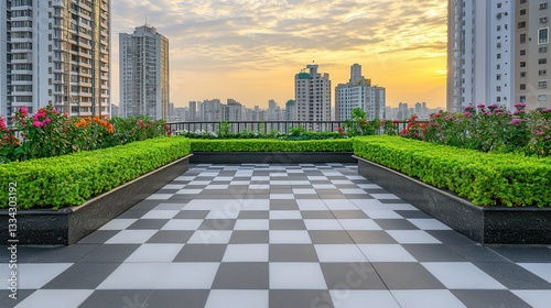 Rooftop Garden Cityscape Sunset Relaxation