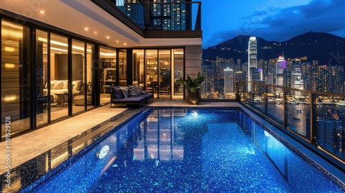 Rooftop Infinity Pool Overlooking Hong Kong Cityscape