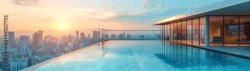 Rooftop Pool with Panoramic City Views at Sunset Offering Luxurious Relaxation and Tranquility