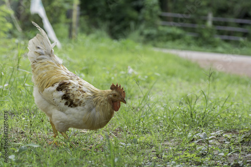 Rooster standing on the grass.