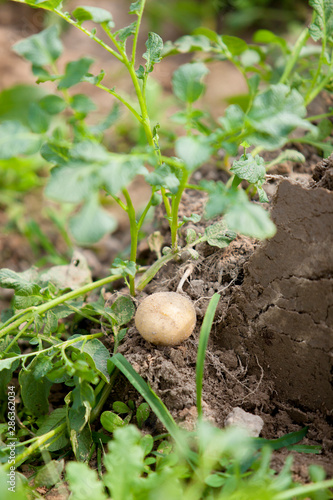 Roots full potatoes are showing a worker at Thakurgong, Bangladesh.