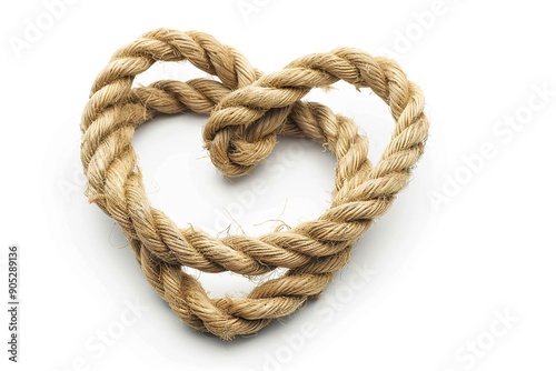 Rope shaped into a heart, isolated on a white background. Ai generative