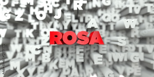 ROSA - Red text on typography background - 3D rendered royalty free stock image. This image can be used for an online website banner ad or a print postcard.