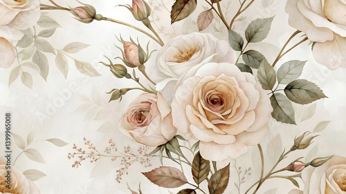 Rose Floral Watercolor Background Cream Soft Beige and Elegant