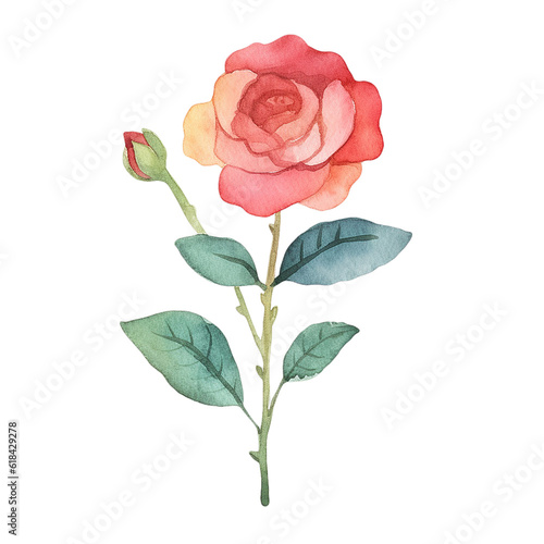Rose Flower - Cute Hand Painted Style - Childish Watercolor Drawing - Fairy Tale Fantasy - Generative AI