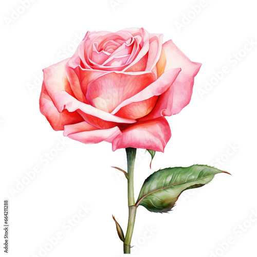 Rose flower watercolor clipart on transparent background. Generative AI illustration