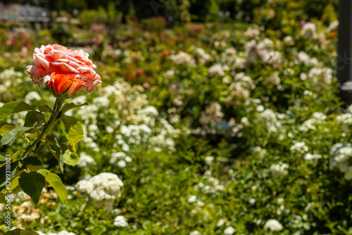Rose Garden in Madrid. Botanical garden with different species of rare and common roses, inebriating scents. Rose arches, ponds and rose hedges accompany us on a floral journey. Love and beauty.