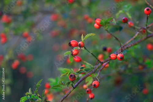 Rose hips growing in summer