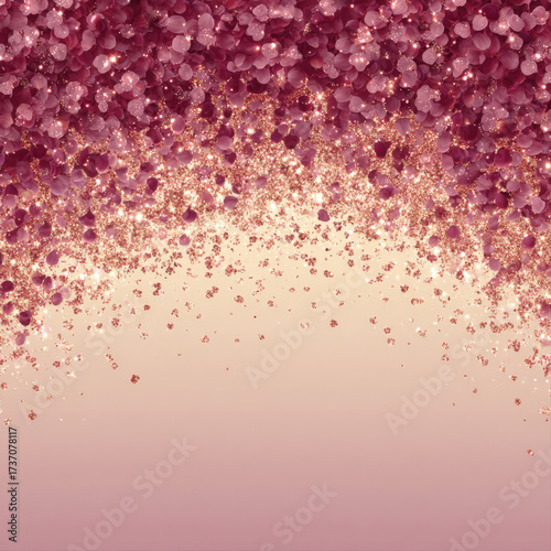 Rose-gold glitter border on ivory gradient background with ample copy space