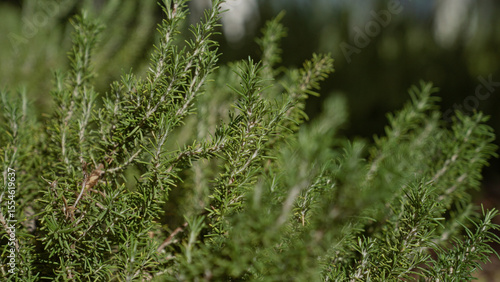 Rosemary plant with lush green leaves growing outdoors in murcia, spain, showcasing its vibrant and aromatic beauty under natural sunlight.