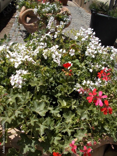 Rośliny, kwiaty w dekoracyjnych naczyniach, Italia.