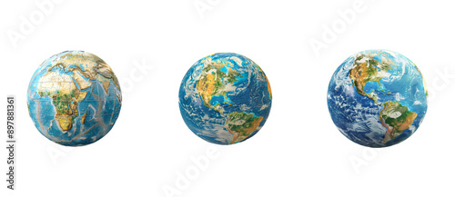 Rotating Globes Showing Different Angles Of Earth Isolated On Transparent Background..