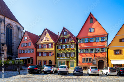 Rothenburger Torturm und Löwenbrunnen am Altrathausplatz, Dinkelsbühl, Bayern, Deutschland