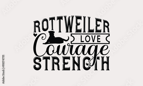 Rottweiler Love Courage Strength - Rottweiler Dog t - shirt design, Hand drawn vintage lettering, illustration for prints on bags, posters Vector template, EPS 10