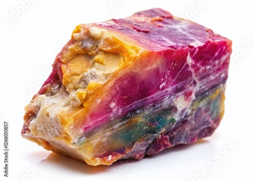 Rough Mineral Stone Isolated on White Background, Natural Rock Specimen, Geology Texture