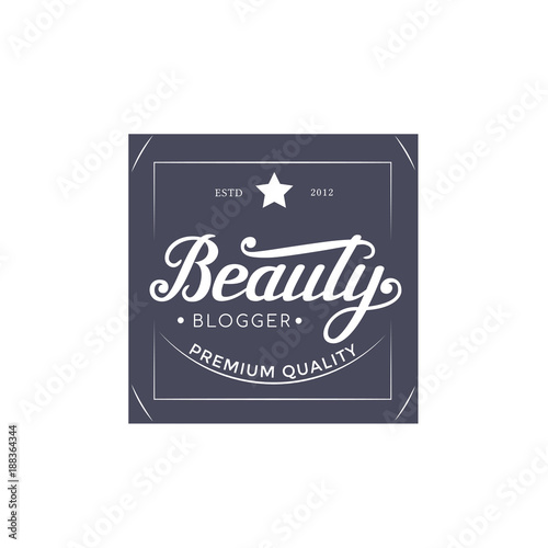 Round Badge Beauty Blogger with Hand Drawn Lettering Isolated in White Background. Black Logo Emblem Vector Illustration. Can be used for Logotype, Branding.