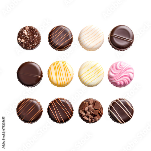 Round colored chocolate pralines on transparent background, white background, isolated, icon material, vector illustration