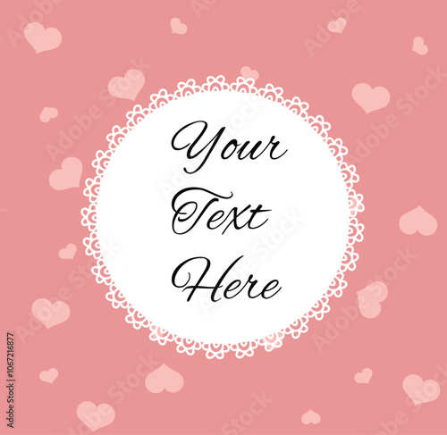 Round Decorated Valentine's Day Frame on Hearts Background. International holiday for friends and lovers vector art. Love and emotions illustration