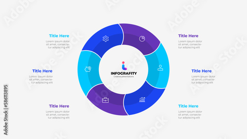 Round diagram divided into 6 segments. Concept of six options of business project infographic