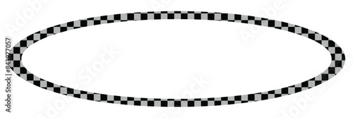 Round frame with black and white checkered print. Circle shape with checkerboard, rally flag or chess game board pattern.