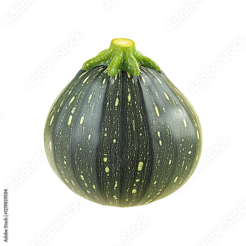 Round Green Zucchini with Yellow Speckles, Isolated on Transparent Background