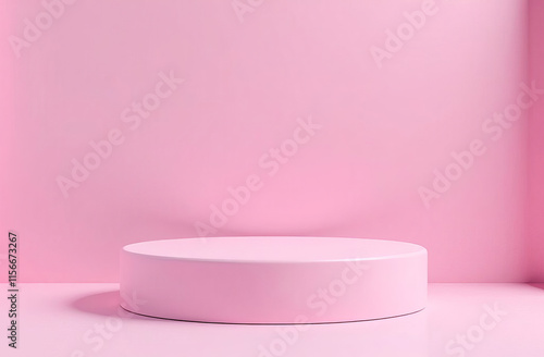 Round podium, minimalist design. Cosmetic product mockup placement pedestal, pink promotion stand display.
