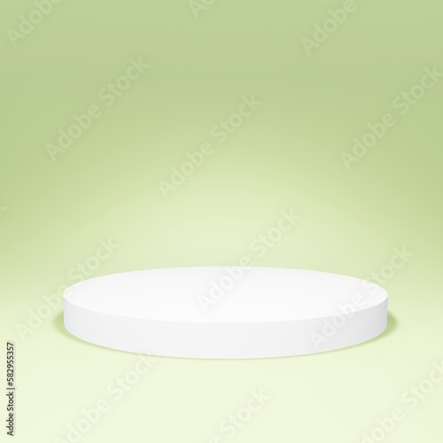Round podium on green background. 3d render.