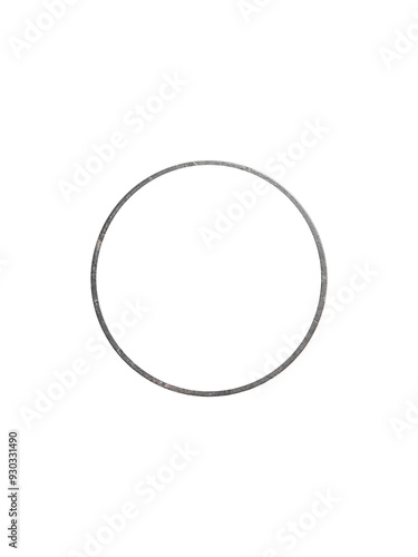 Round rusty cast iron frame is isolated. The metal is heavily weathered and pitted.