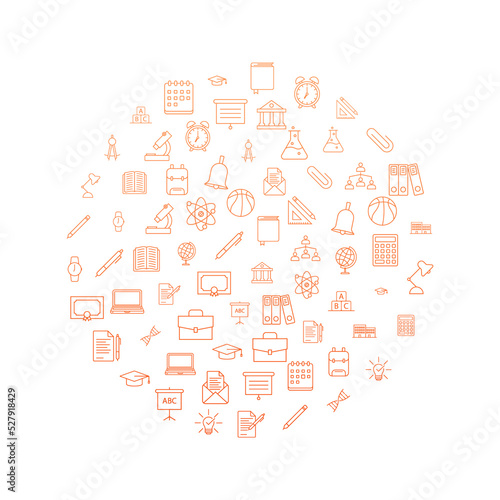 Round set icon education for mobile app design. Online course line icon set. Online study, education. Vector stock illustration.