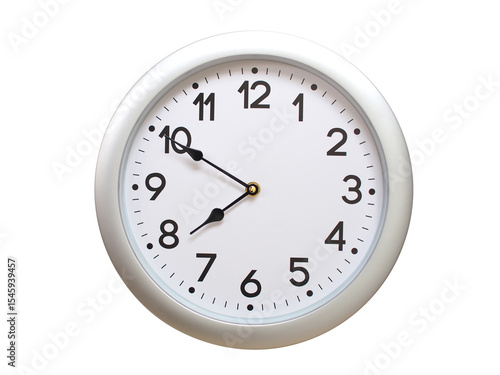 Round Silver Wall Clock Showing 07:50 or 19:50 Isolated-White. Useful for concepts like noon, midnight, deadline, countdown, or time management.