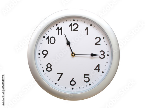 Round Silver Wall Clock Showing 11:15 or 23:15 Isolated-White. Useful for concepts like noon, midnight, deadline, countdown, or time management.