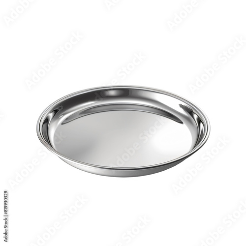Round stainless steel tray polished finish die cut PNG style isolated on white and transparent background