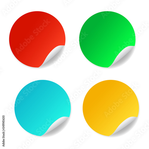 Round stickers isolated on white background. Yellow, red, blue, green blank, banner or circular folded label. Set for present, advertisement circular price, rounded discount promo tags