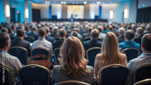 Round table discussion at business convention and Presentation. Audience at the conference hall. Business and entrepreneurship symposium