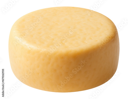Round wheel of asiago pressato cheese with a semi-soft texture