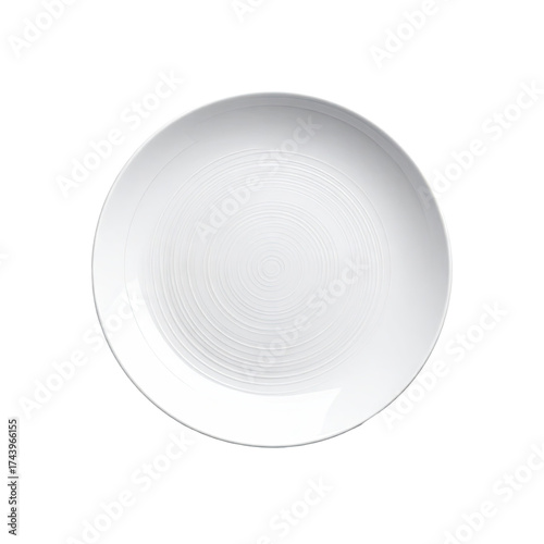 Round white dinner plate with subtle swirl design
