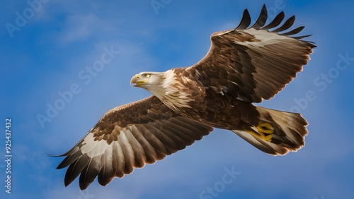 Round Winged Eagle Flying on Blue Sky Background, Photo Realistic, Pattern Background, Wallpaper, Cover and Screen for Smartphone, Cell Phone, Computer, Laptop