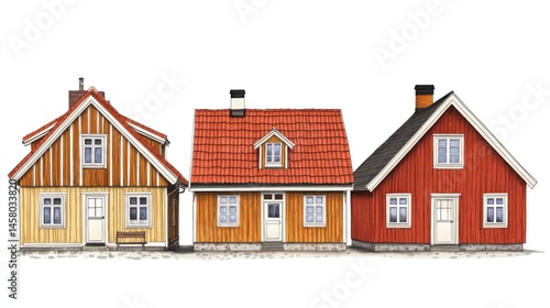 Row of charming, colorful, wooden houses