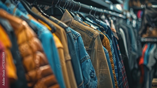 Row of clothes hanging on a rack, ideal for fashion or retail concept