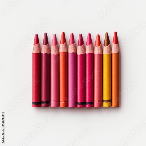Row of colorful crayons on white background
