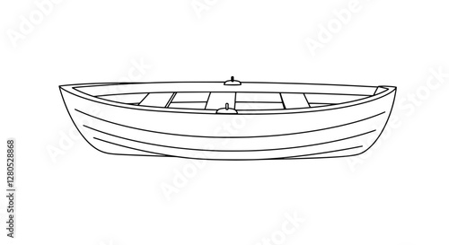 Rowboat Outline: A minimalist illustration of a rowboat, rendered in clean, simple lines, perfect for representing travel, water, and nautical themes.