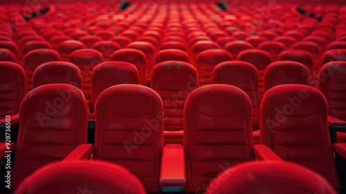 Rows of Red Seats in an Empty Auditorium