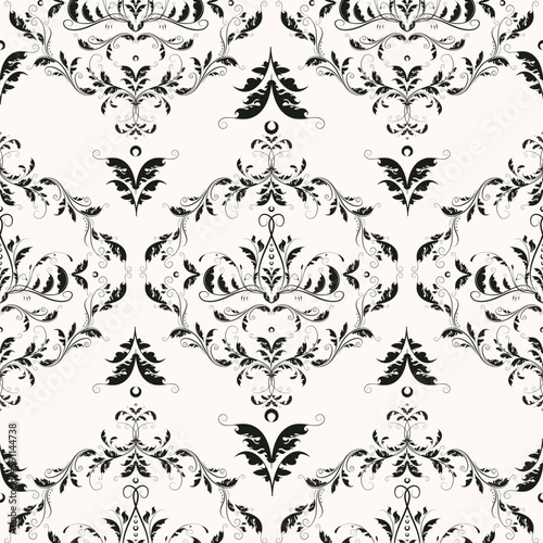 Royal rococo damask seamless pattern. Floral baroque vector background.