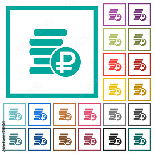 Ruble coins flat color icons with quadrant frames