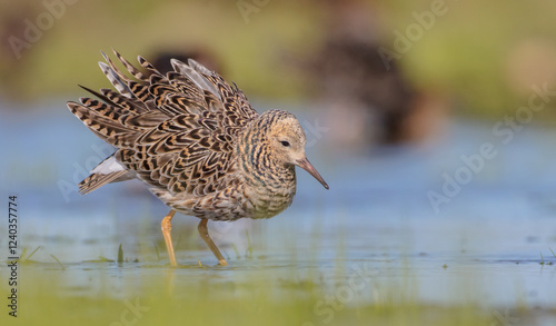 Ruff - male bird at a wetland on the mating season in spring