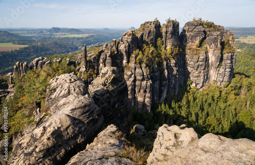 Rugged Rock Outcrops at an Overlook in Saxon Switzerland National Park, Nationalpark Sächsische Schweiz